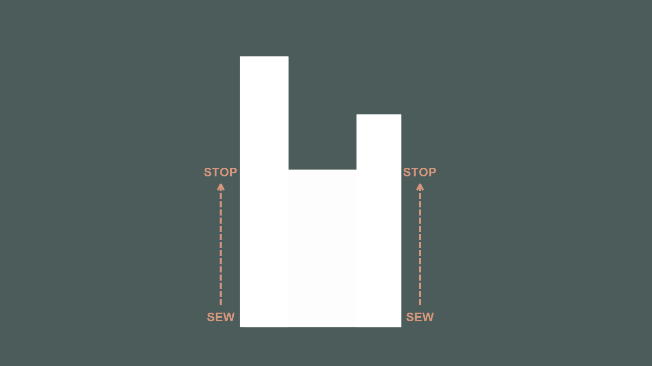 Fold the finished piece in half and sew together the tops of the straps.